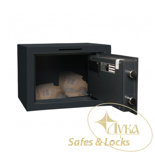 Сейф Griffon RD.26.E предназначен для депонирования, т.е. для помещения денежных купюр внутрь сейфа без возможности доступа непосредственно к его содержимому (без открытия двери). В конструкции лицевой панели сейфа над дверью расположено отверстие для депонирования размером 97 мм х 6 мм.