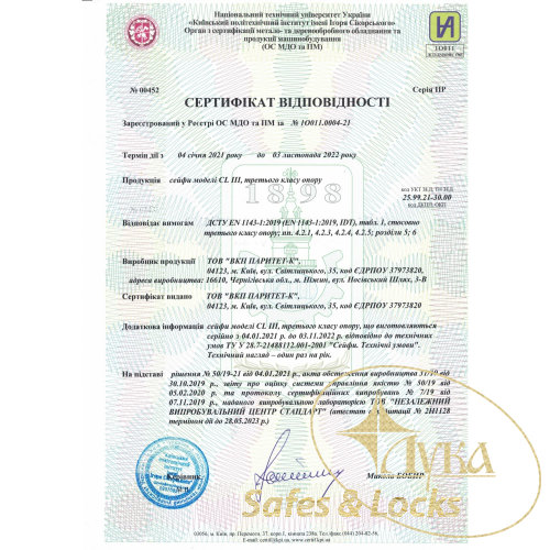 Взломостойкость: III класс ДСТУ EN 1143-1:2019