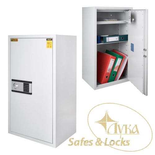 Сейф офисный Gute PN-87T с кассовым отделением (трейзером) - предназначен для хранения документов, в т.ч. в папках формата А4, денег, украшений и других мелких ценностей. Укомплектован электронным кодовым замком с возможностью аварийного открытия. Может быть рекомендован как для личного пользования, так и для бизнеса (например, сейф для бухгалтерии).