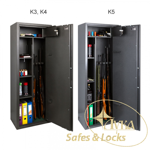 Модели сейфов SAFEtronics MAXI 5PM/K3/K4/K5 отличаются внутренней конструкцией - ширина полок и количество ложементов - К3 (3 ружья), К4 (4 ружья), К5 (5 ружий). При заказе просьба указывать, какая модель вас интересует.