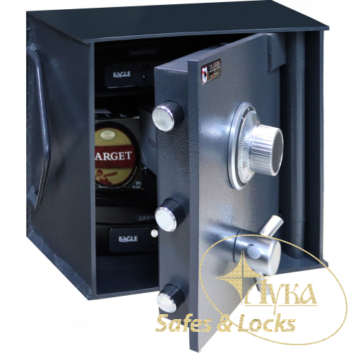 Product Features: Type of safe - wall-mounted, model WB.3436.C Door metal thickness, mm 10 Type of lock - mechanical combination lock La GARD (USA) VdS class 1 Crossbar system - 3 chrome-plated active rotating crossbars, crossbar diameter 25 mm Shelves - 1 pc. Type of coating - paint and varnish Color - Dark Gray 5 year design warranty 1 year warranty on the castle