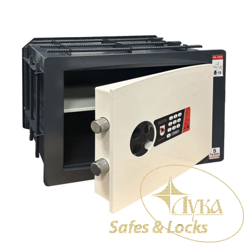 Сейф встраиваемый GRIFFON WL.3228.E в стену, с электронно-кодовым замком. Предназначен для хранения документов и ценностей в домашних условиях. Толщина лицевой панели - 8 мм. Использование лазерной резки при производстве этих сейфов позволяет получить продукцию с минимальными зазорами. Надежный ригельный механизм. Система запирания с двумя динамичными вращающимися ригелями диаметром 25 мм. Наличие съемной полки. Количество полок: 2 шт, съемные Оборудован электронным кодовым замком Griffon. Замок питается от четырех батарей типа "АА", которые находятся в середине сейфа. Время их функционирования 1-1,5 года. Если батареи разряжаются ниже допустимого уровня - то при каждом открытии замка будет звучать длительный звуковой сигнал предупреждения. Если же их все таки не успеют заменить - то на внешней части замка находятся две клеммы, приложив к которым новую батарею типа „крона” (9 В), Вы сможете отворить сейф. Возможно использование батарей типа „крона” (9 В) в качестве основного электропитания, для чего предварительно нужно отсоеденить переходник в сейфе. Электронный кодовый замок разрешает устанавливать 6 цифр в кодовую комбинацию. После 4-х попыток ввода неверного кода замок сейфа автоматически блокируется на 5 минут. В комплект поставки входит специальная арматура для крепления сейфа в стену. Гарантия на сейф 5 лет, гарантия на замок 1 год.