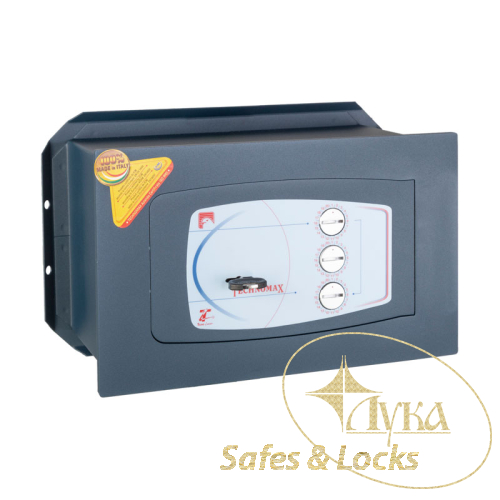 Сейф встраиваемый Technomax GD/3 - надёжный стенной итальянский сейф высокого качества. Двери из легированной стали толщиной 10 мм, корпус из стали толщиной 2 мм. Надёжный 8-сувальдный замок и кодовый замок который управляется тремя 20 позиционными переключателями.
