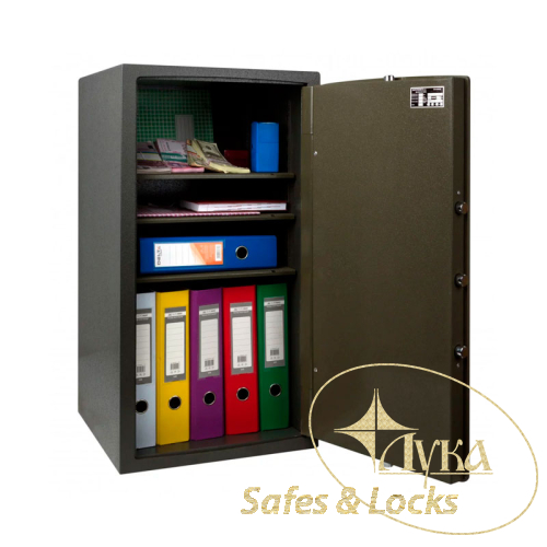 Сейф словацкой фирмы SAFEtronics NTR 80M с ключевым замком немецкой фирмы Mauer. Предназначен для защиты документов и ценностей от несанкционированного доступа (взлома). Притвор двери заполнен термостойким материалом с целью защиты ригелей от газореза.