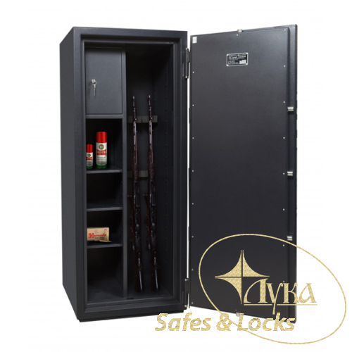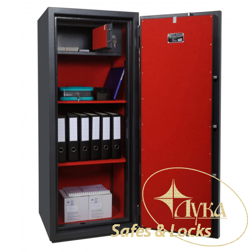 Тип замка - ключевой сейфовый замок STUV (Германия), сертификат класса VDS 1, электронный кодовый сейфовый M-LOCKS (Нидерланды), сертификат класса VDS 2.
